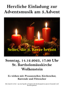 Pfarrer Ahner ist vom 03.01. bis zum 06.01.2026 ortsabwesend. Im Trauer- und Seelsorgefall ist Pfarrer Lau aus Großrückerswalde für Sie erreichbar unter 03735/6609824.