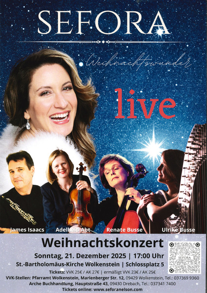Herzliche Einladung zu einem Live-Konzert mit der Sängerin Sefora Nelson unter dem Titel „Weihnachtswunder”.